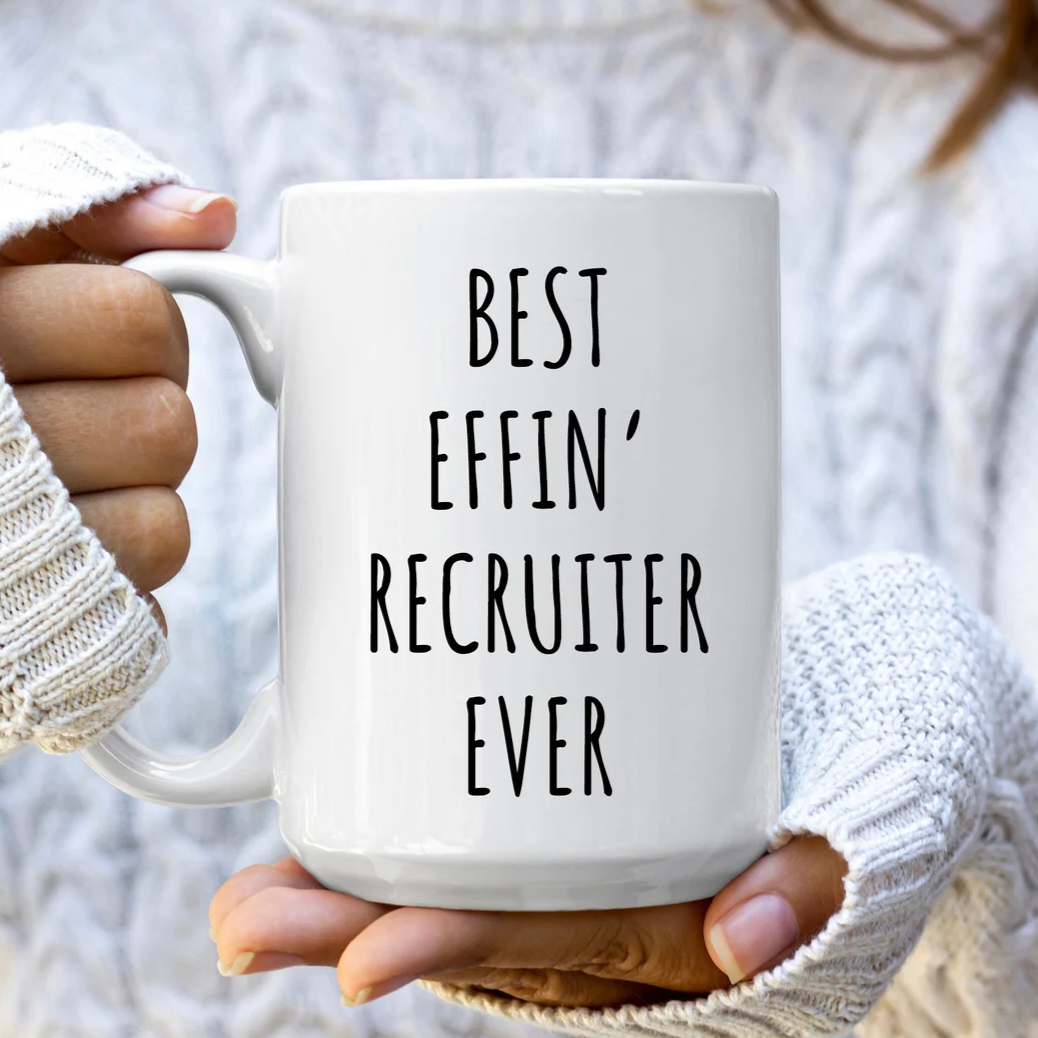 "Best Effin' Recruiter Ever" coffee mug in white.