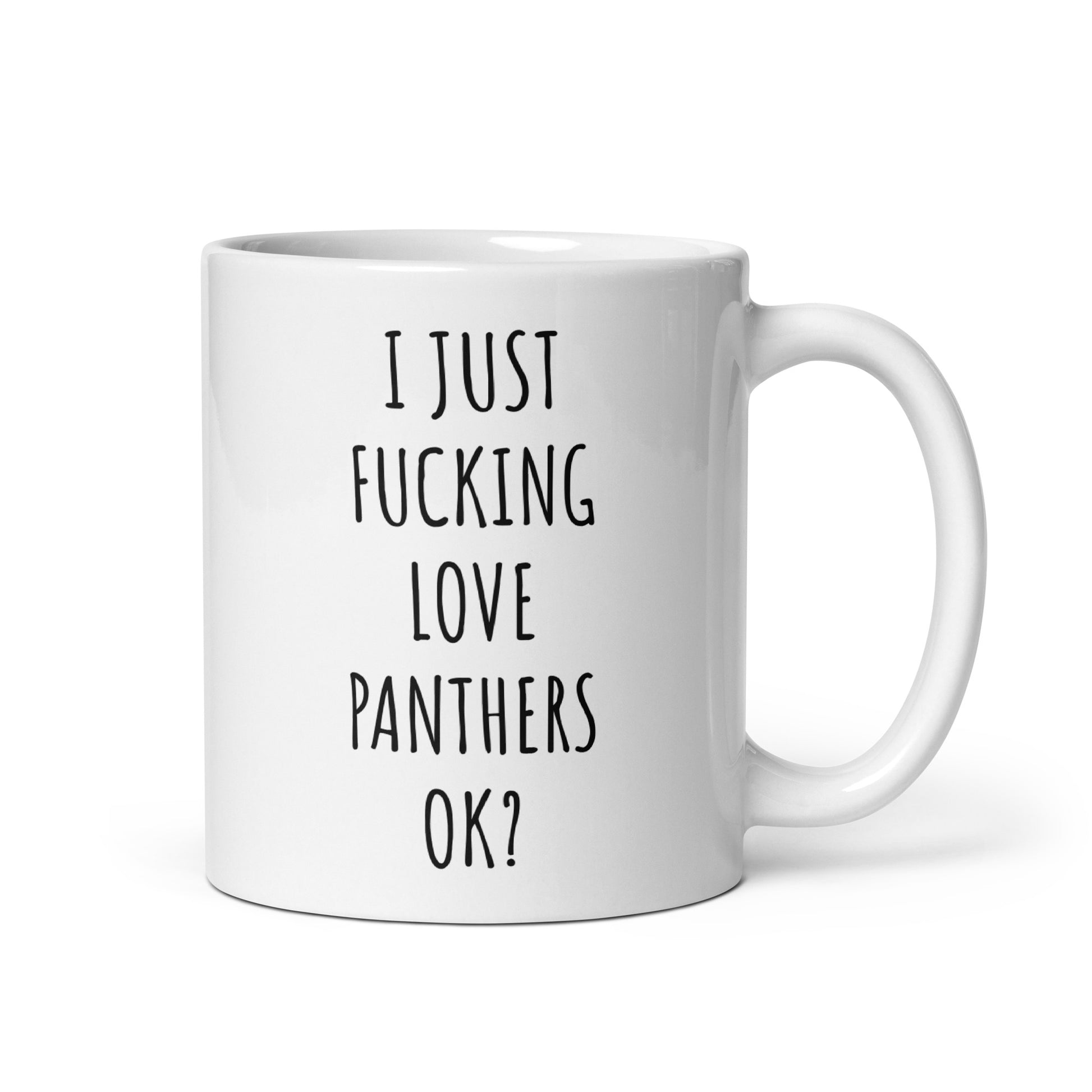 “I Just Fucking Love Panthers Ok?" coffee mug in white.