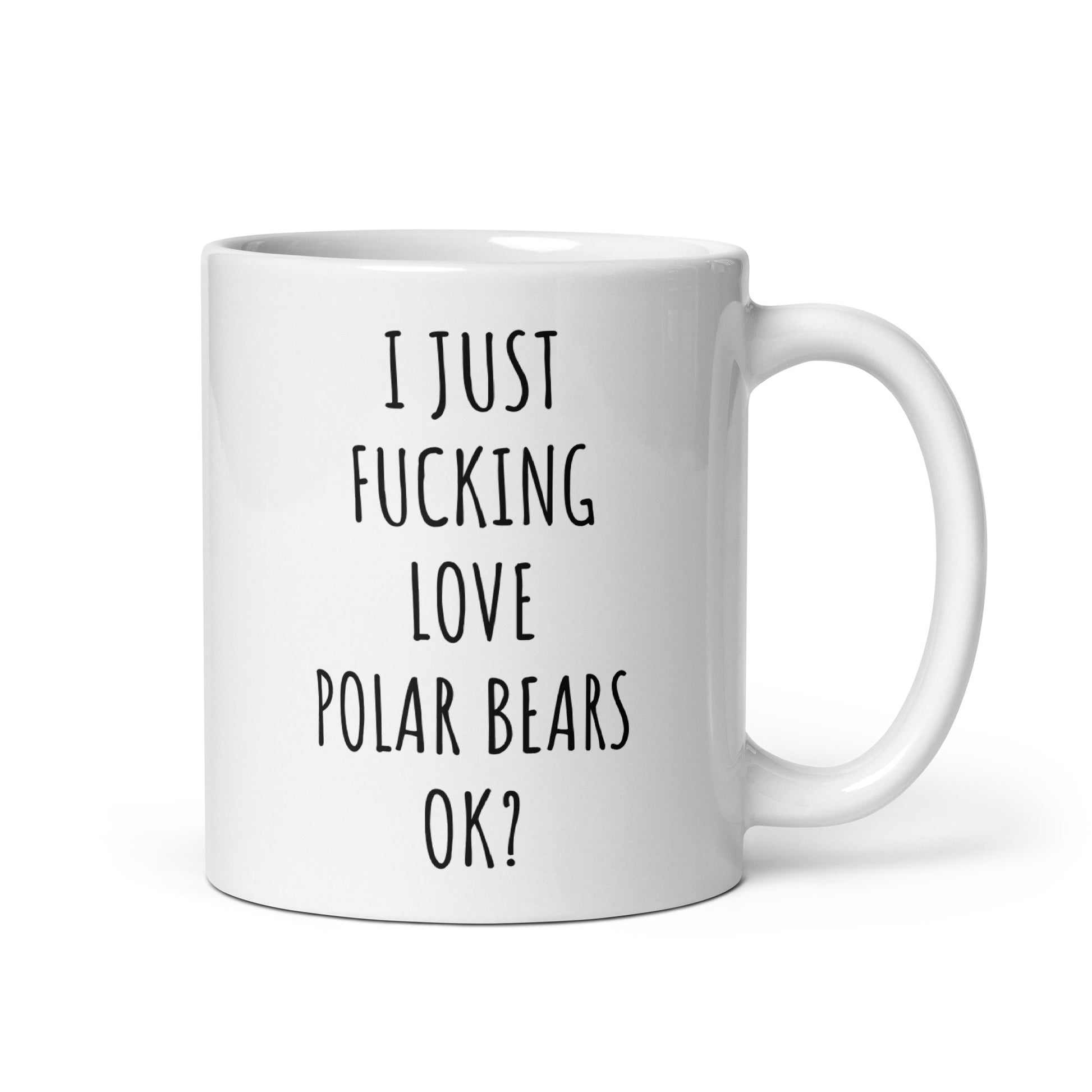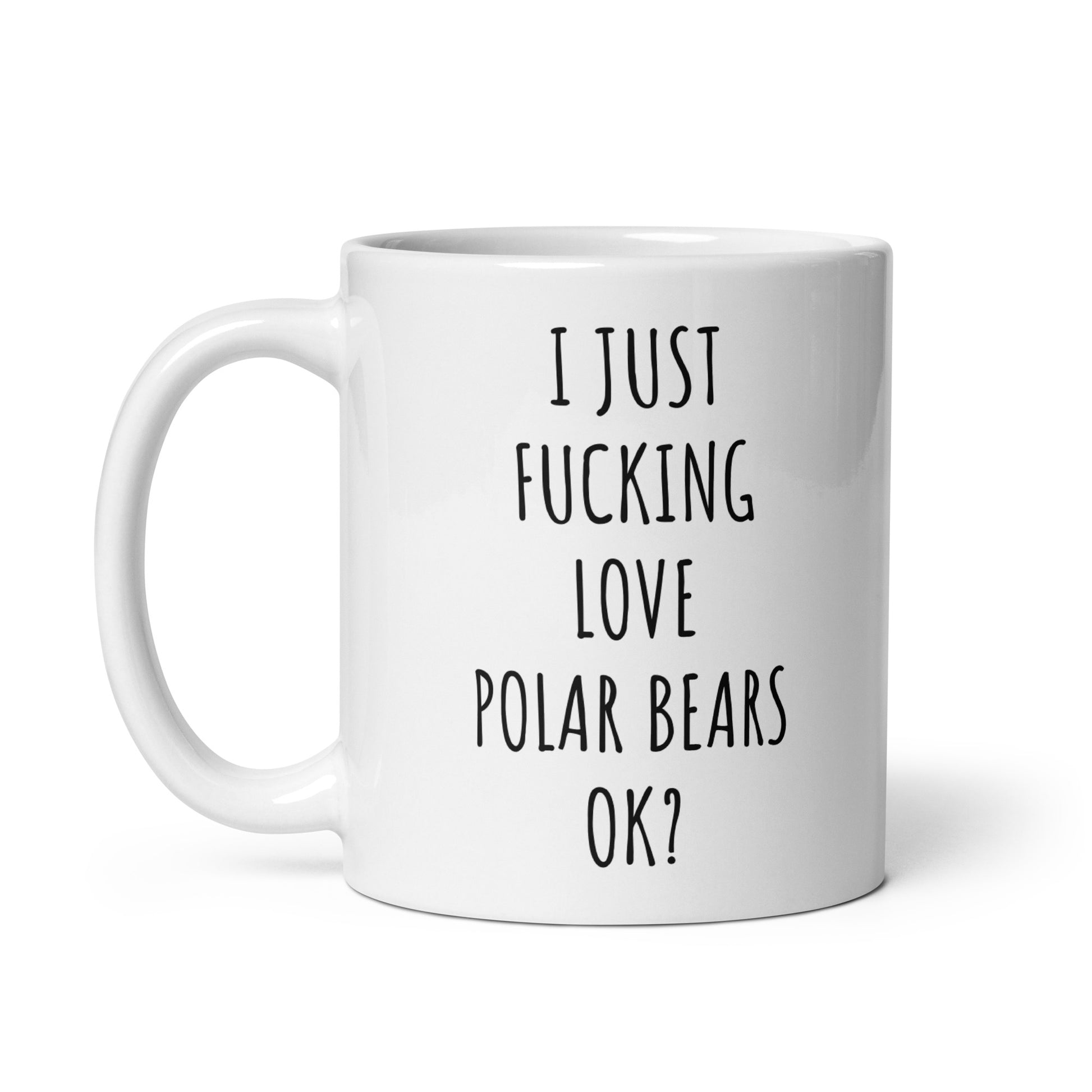 “I Just Fucking Love Polar Bears Ok?" coffee mug in white.
