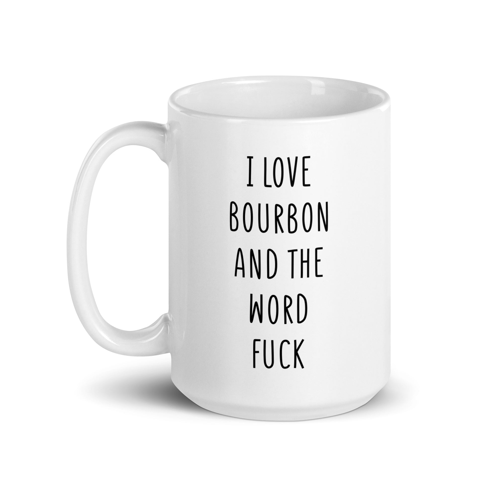 “I Love Bourbon And The Word Fuck" coffee mug in white.