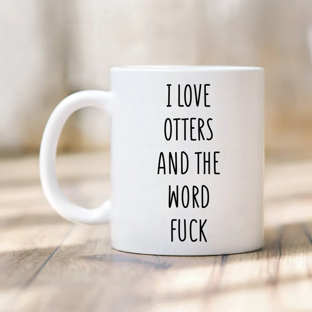 “I Love Otters And The Word Fuck" coffee mug in white.