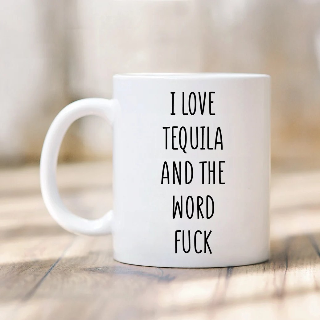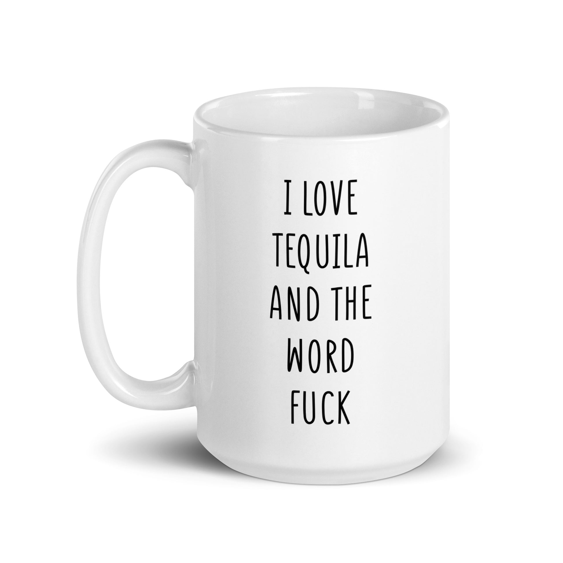 “I Love Tequila And The Word Fuck" coffee mug in white.