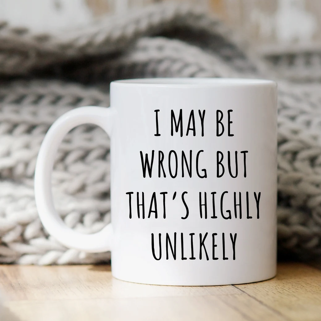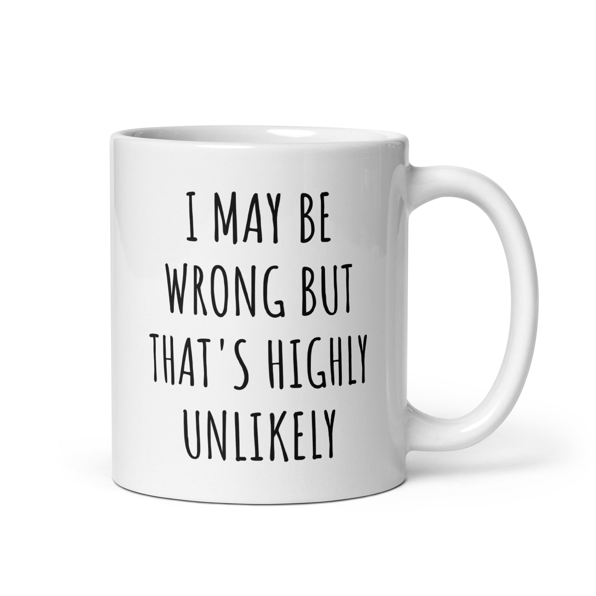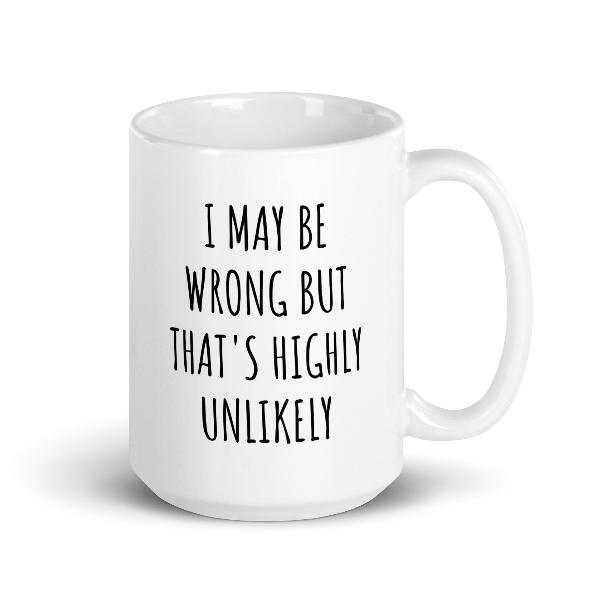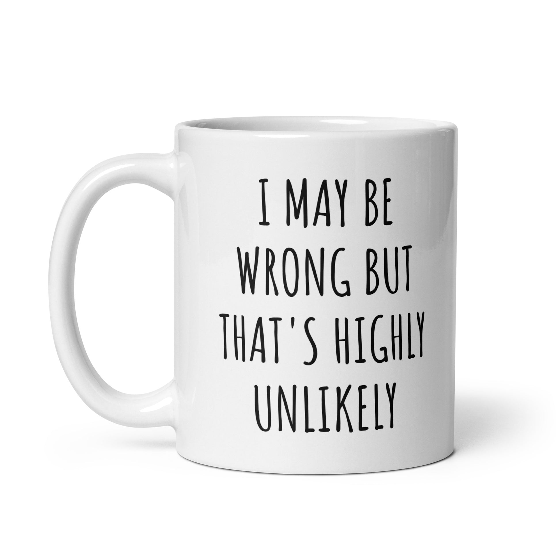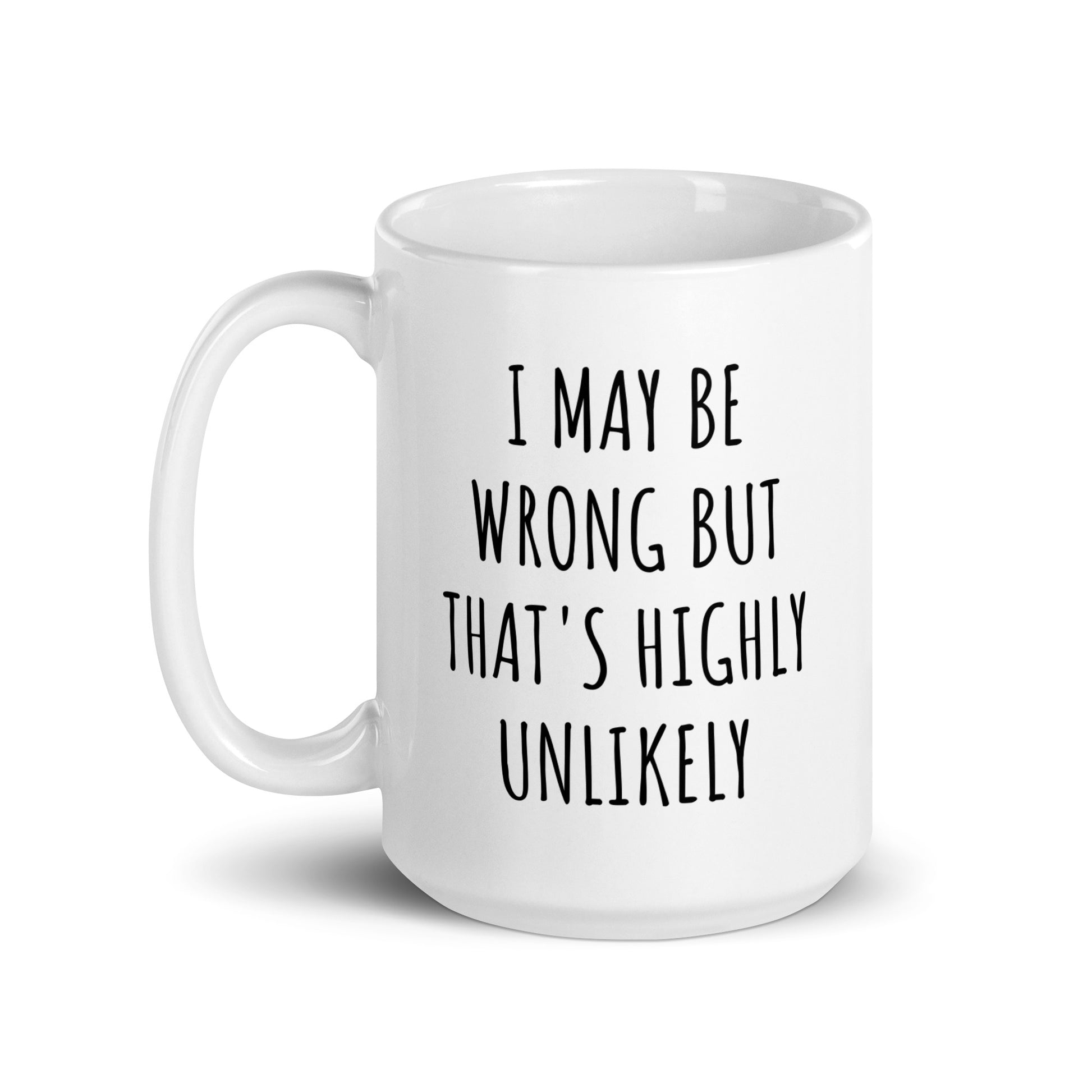 “I May Be Wrong But That Is Highly Unlikely" coffee mug in white.