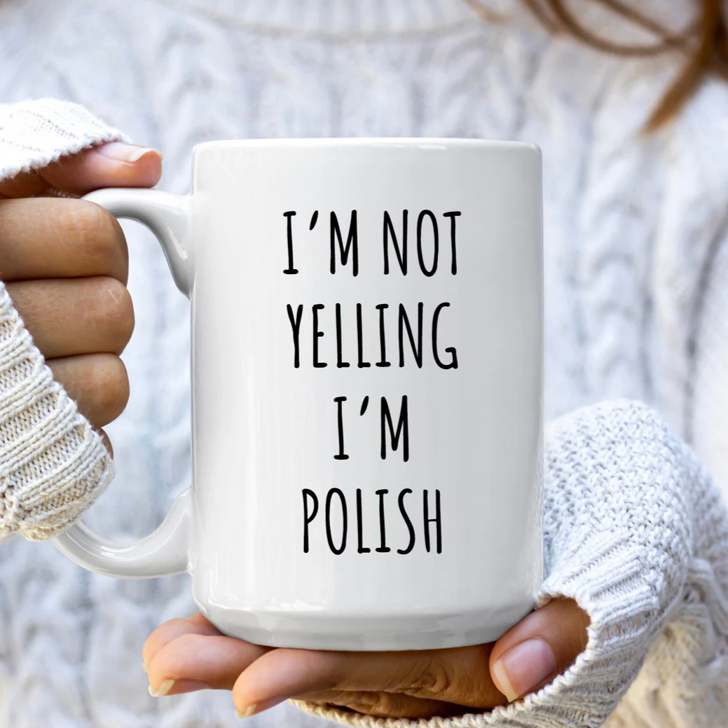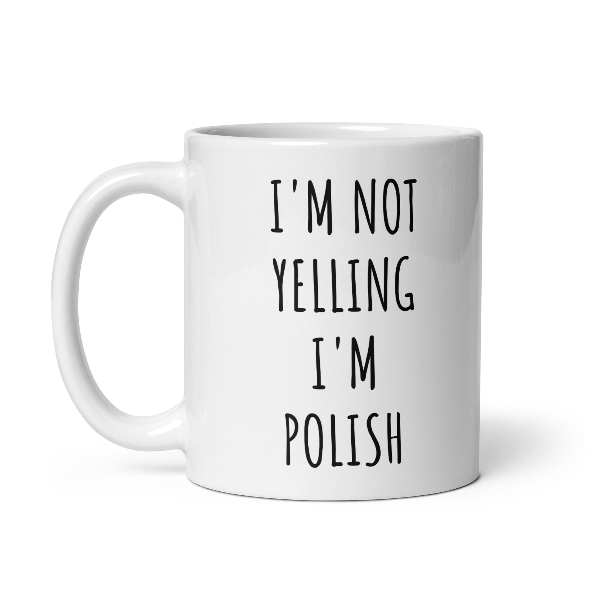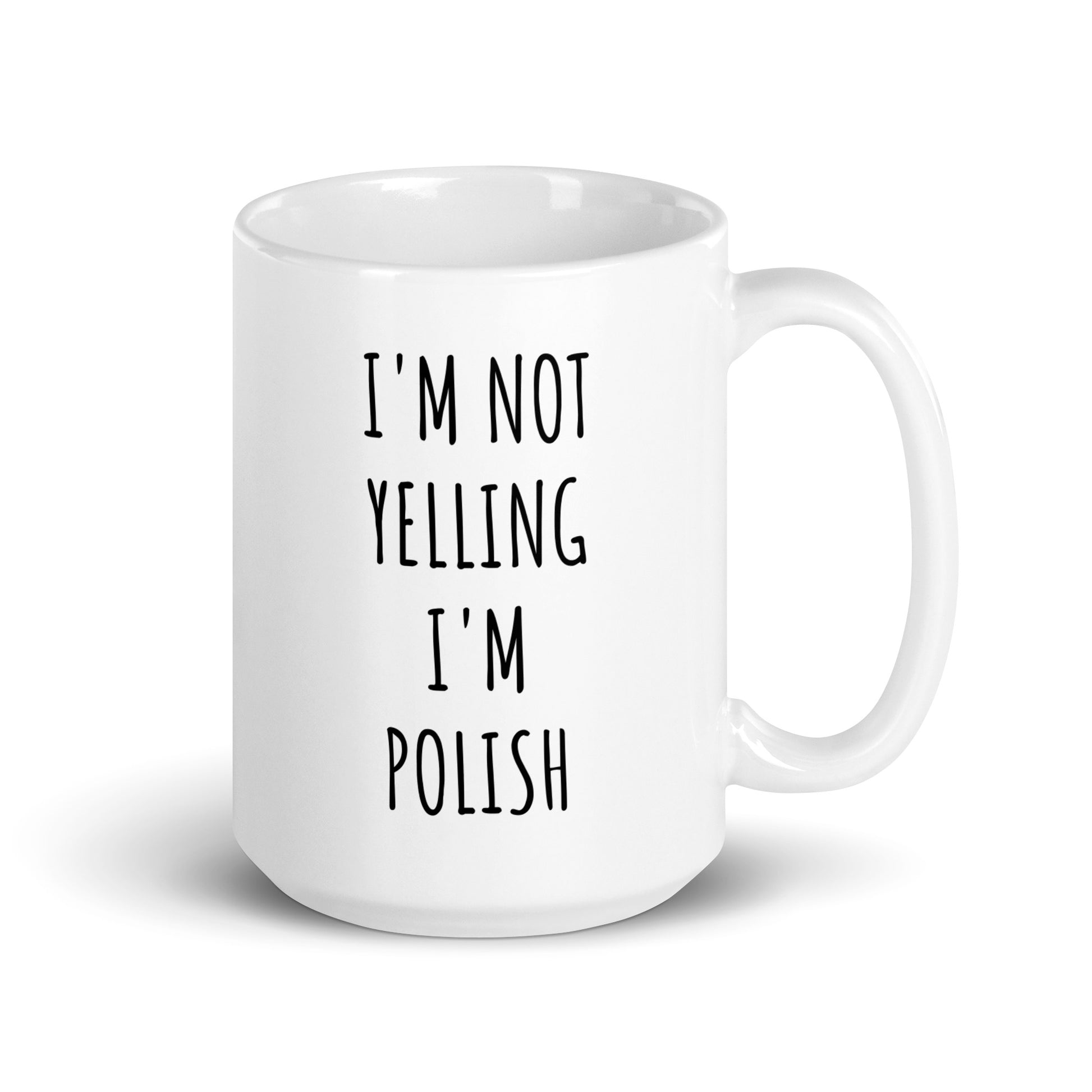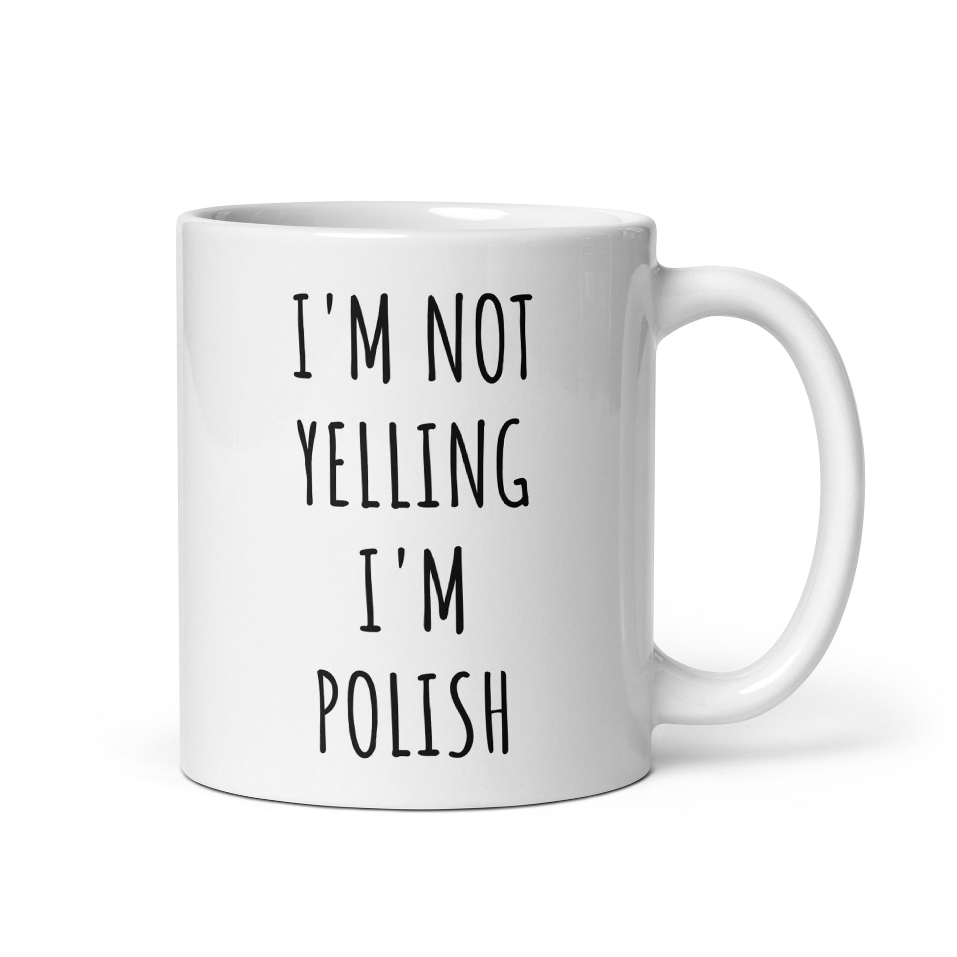 “I'm Not Yelling I'm Polish" coffee mug in white.