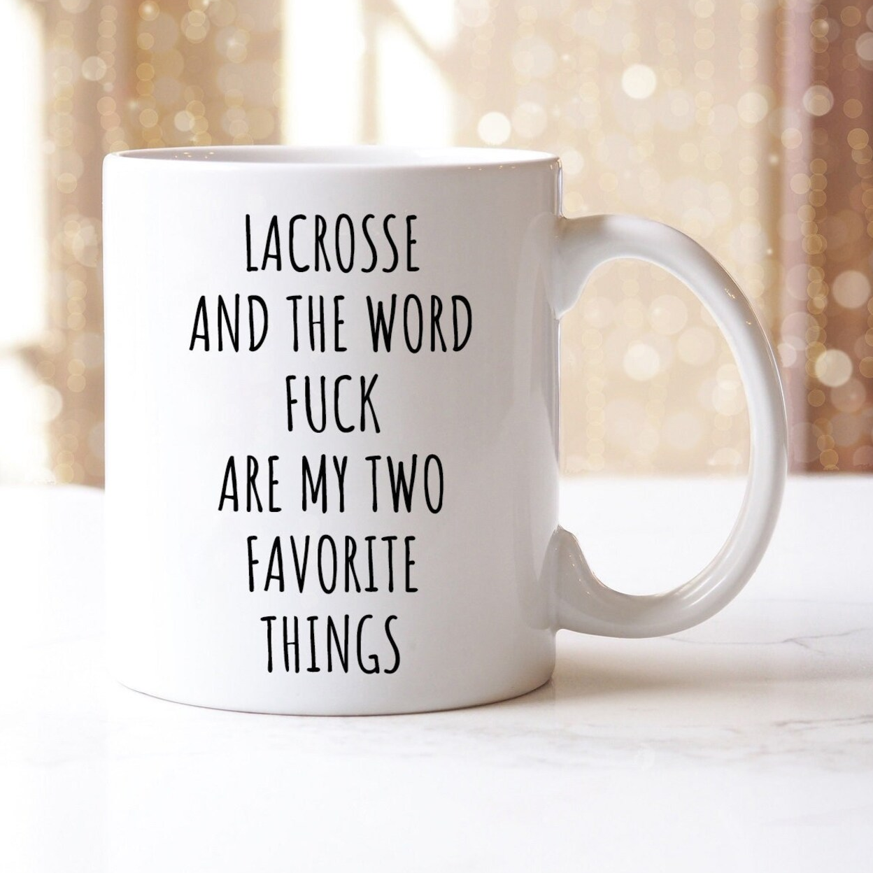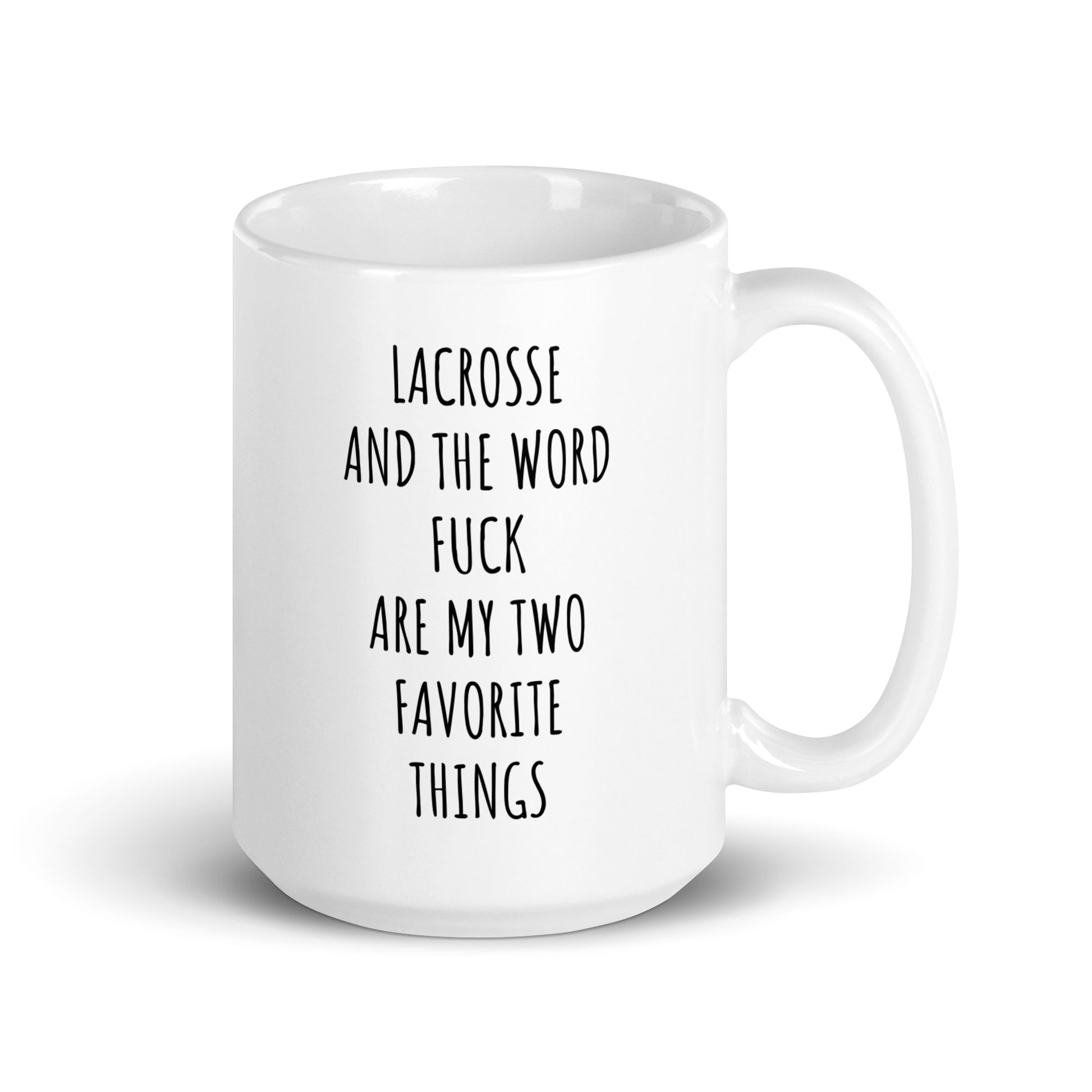 “Lacrosse And The Word Fuck Are My Two Favorite Things" coffee mug in white.
