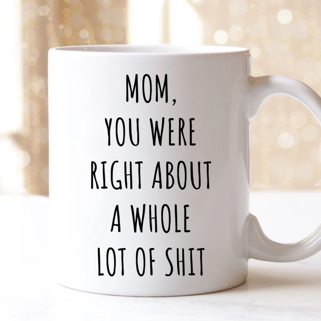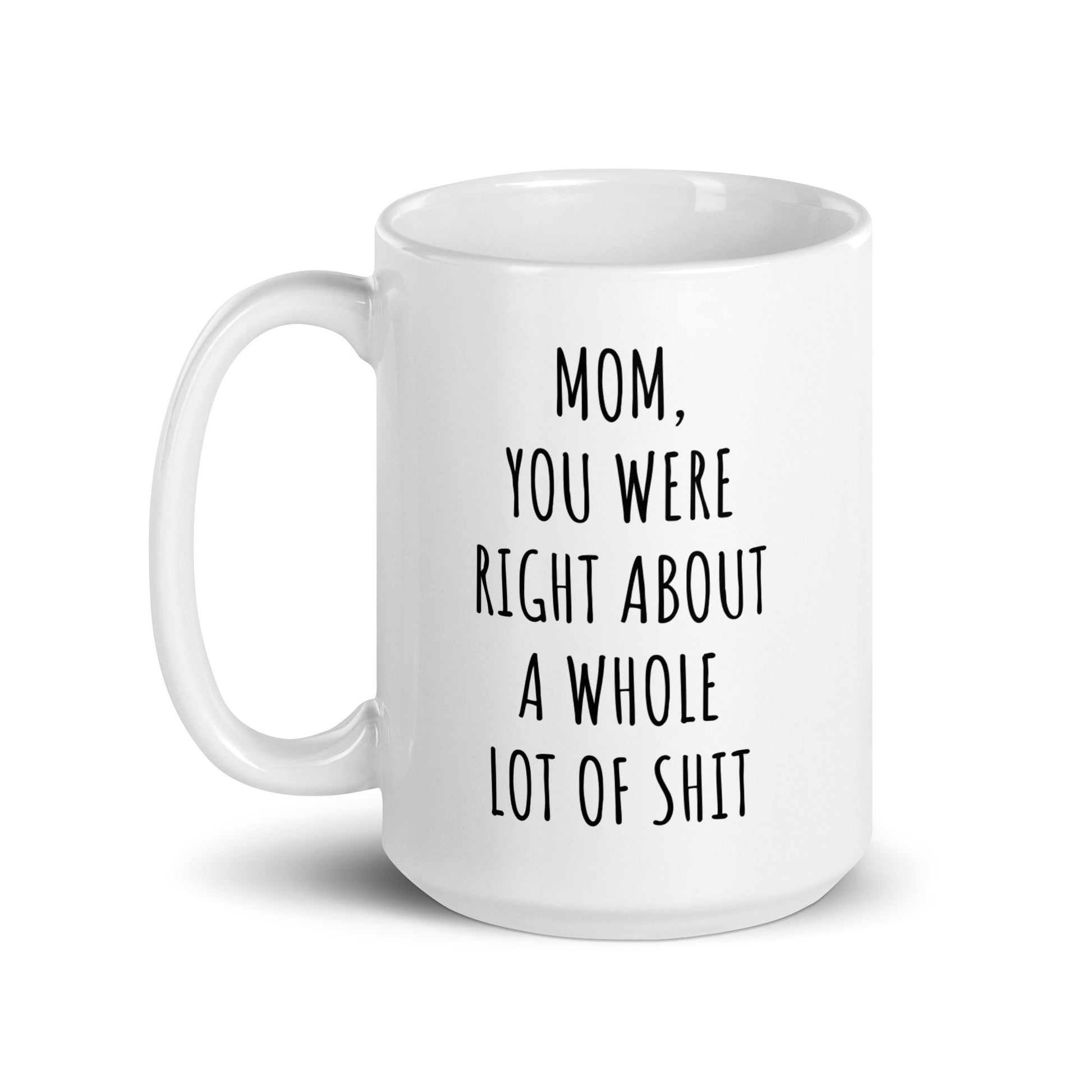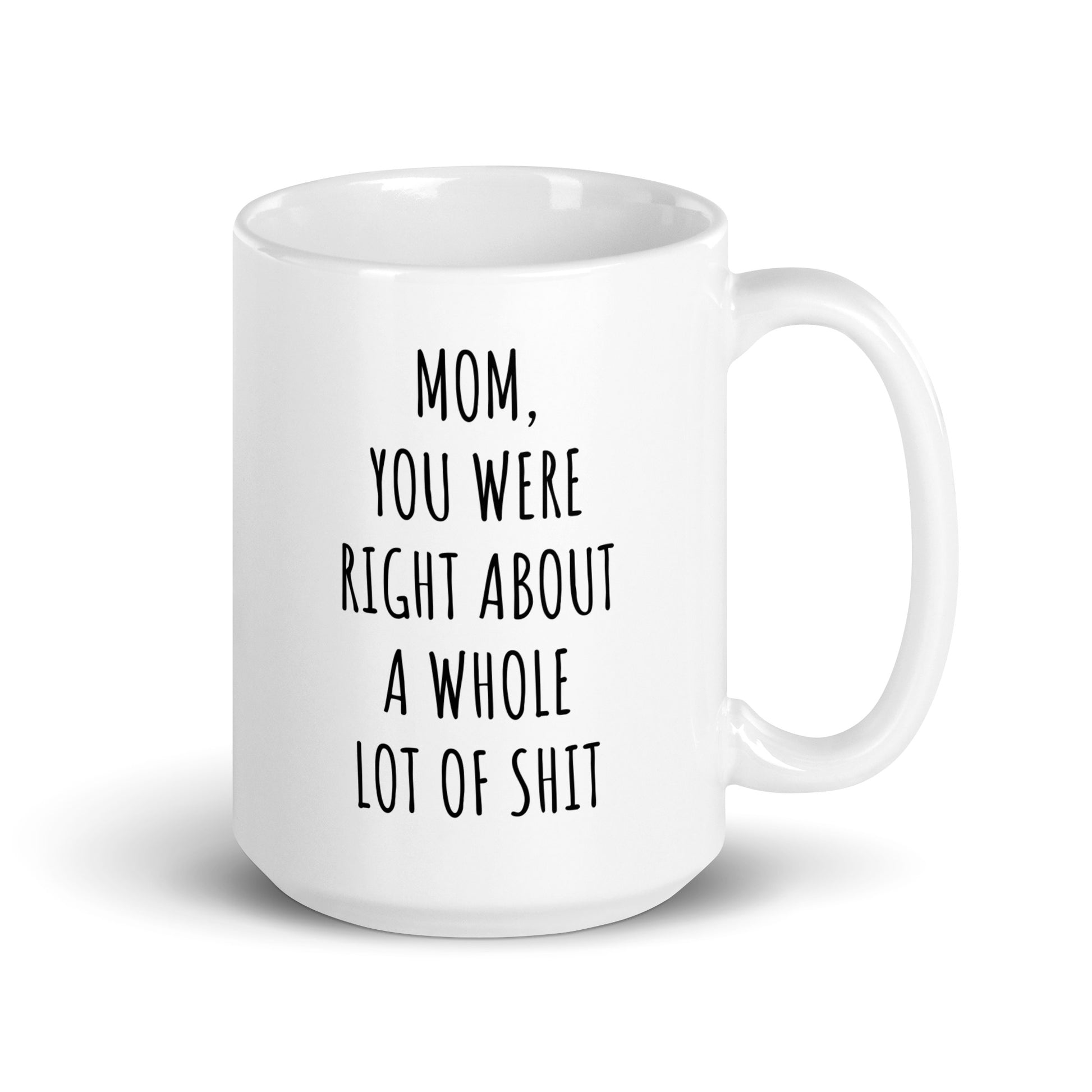 “Mom, You Were Right About A Whole Lot Of Shit" coffee mug in white.