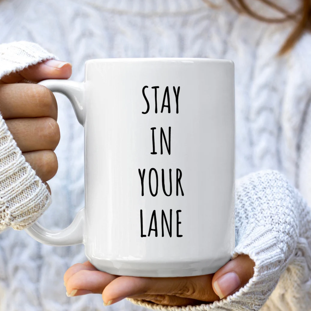 This mug is the perfect gift for you or anyone in your life! Tell that special someone to stay in their lane whenever you're drinking your favorite cup of coffee or tea!