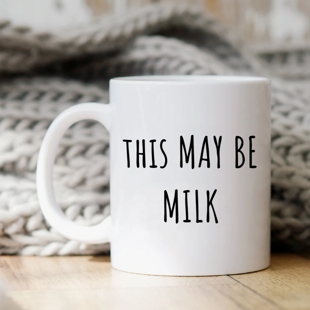 “This May Be Milk" coffee mug in white.