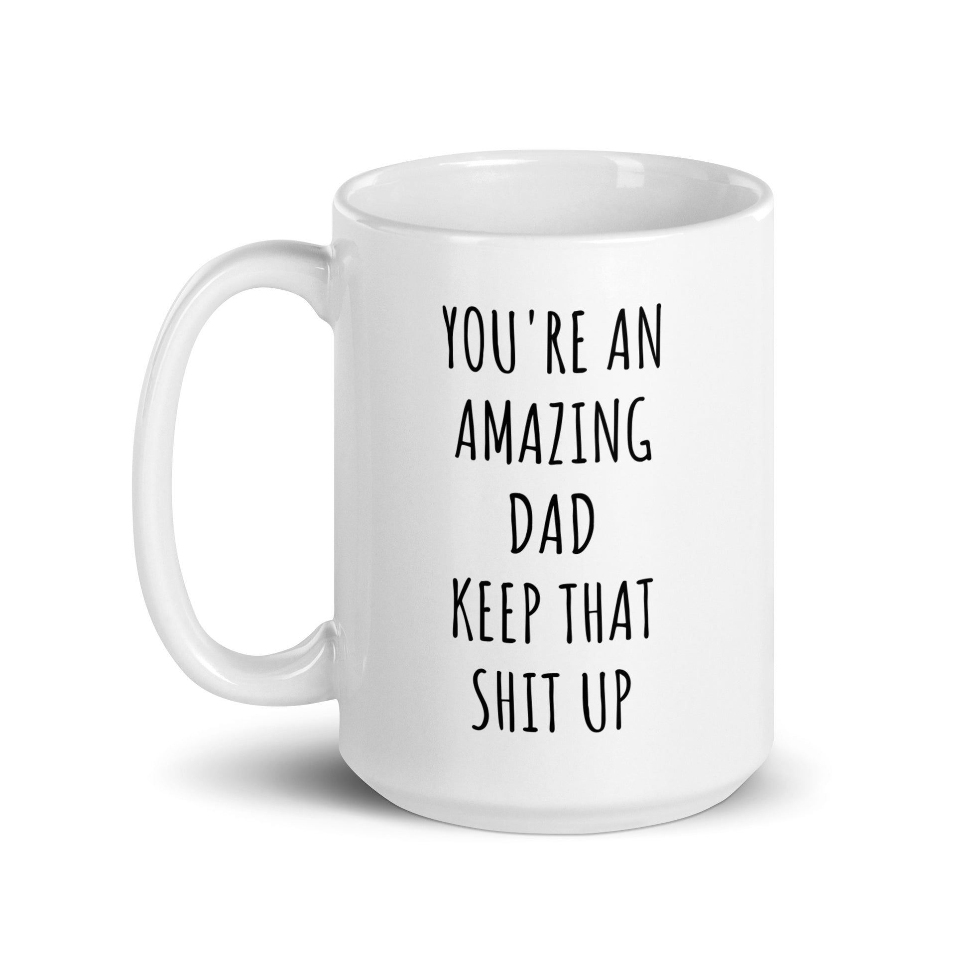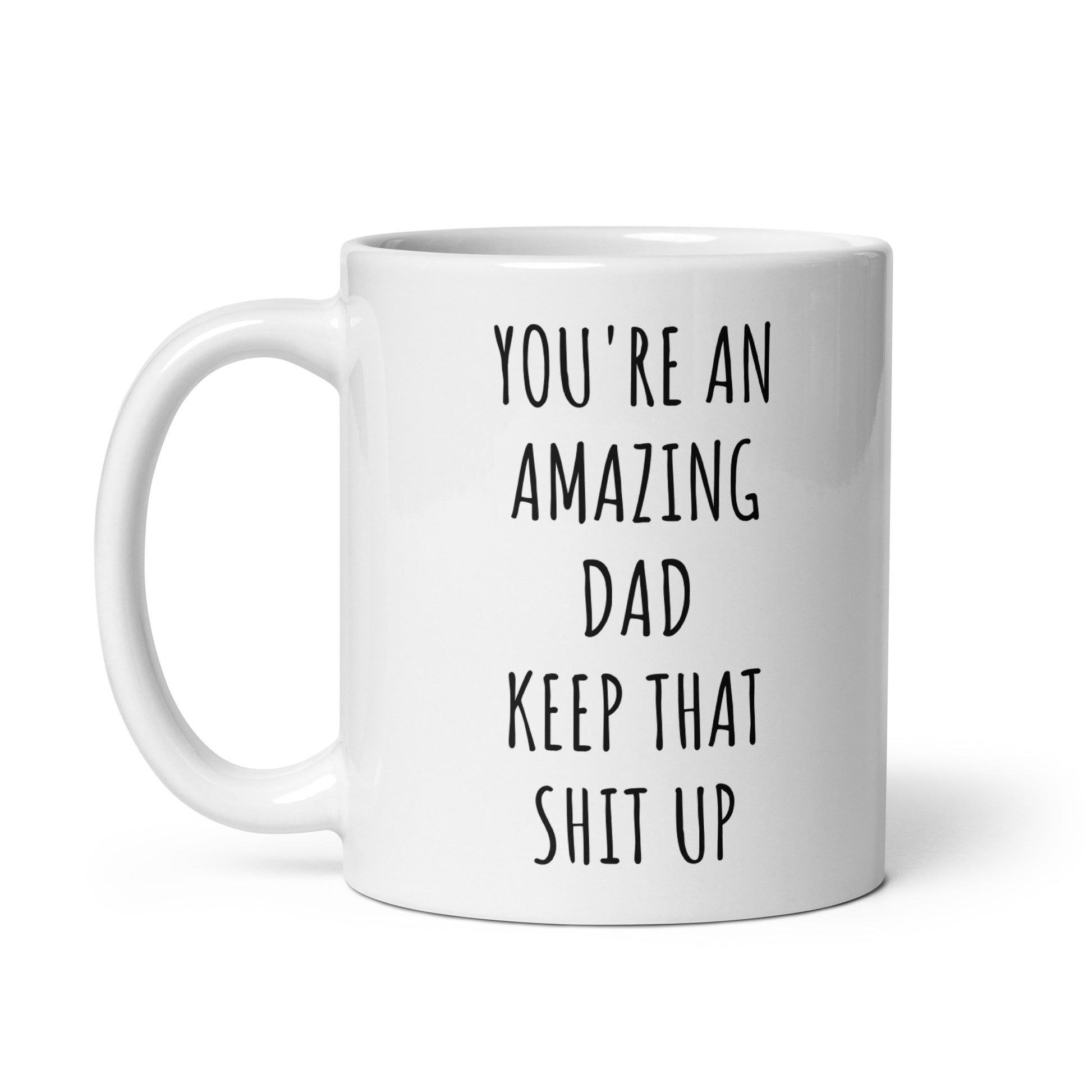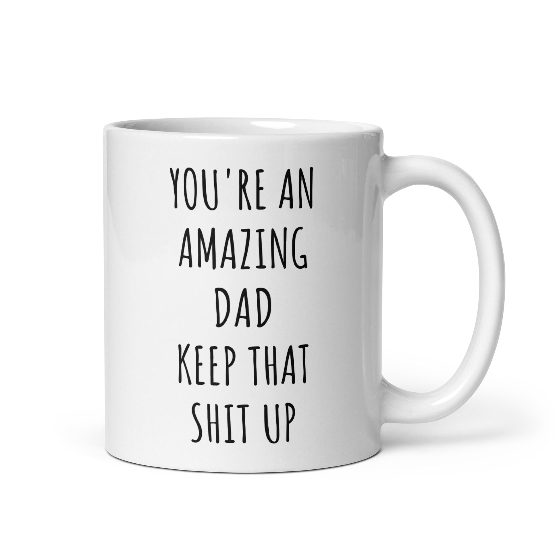 “You're An Amazing Dad Keep That Shit Up" coffee mug in white.