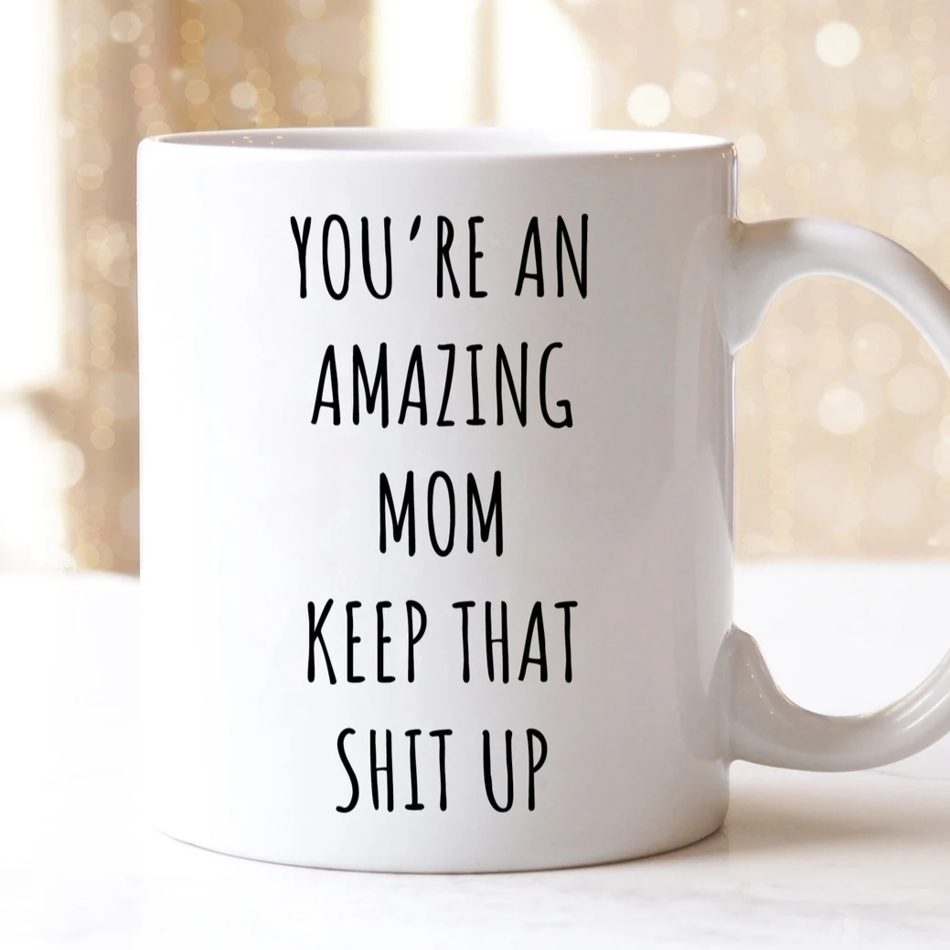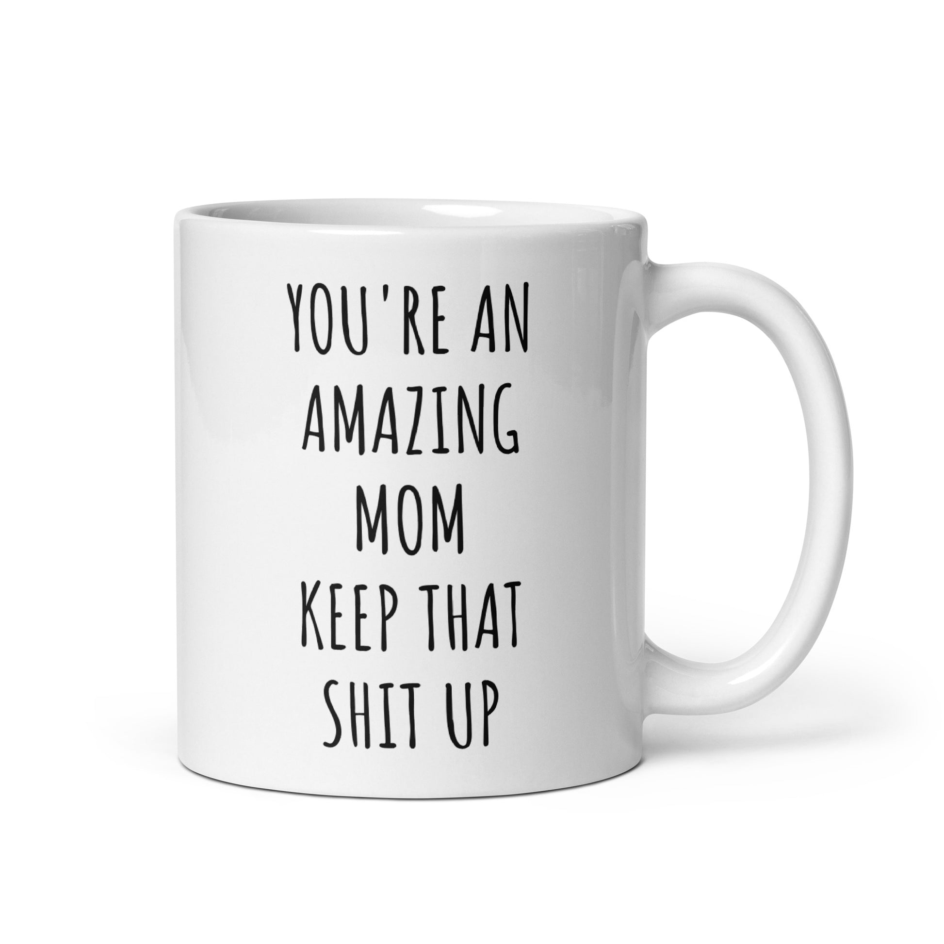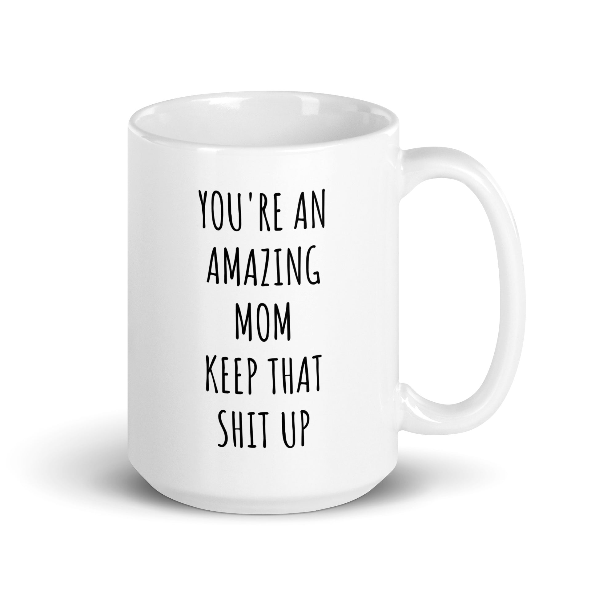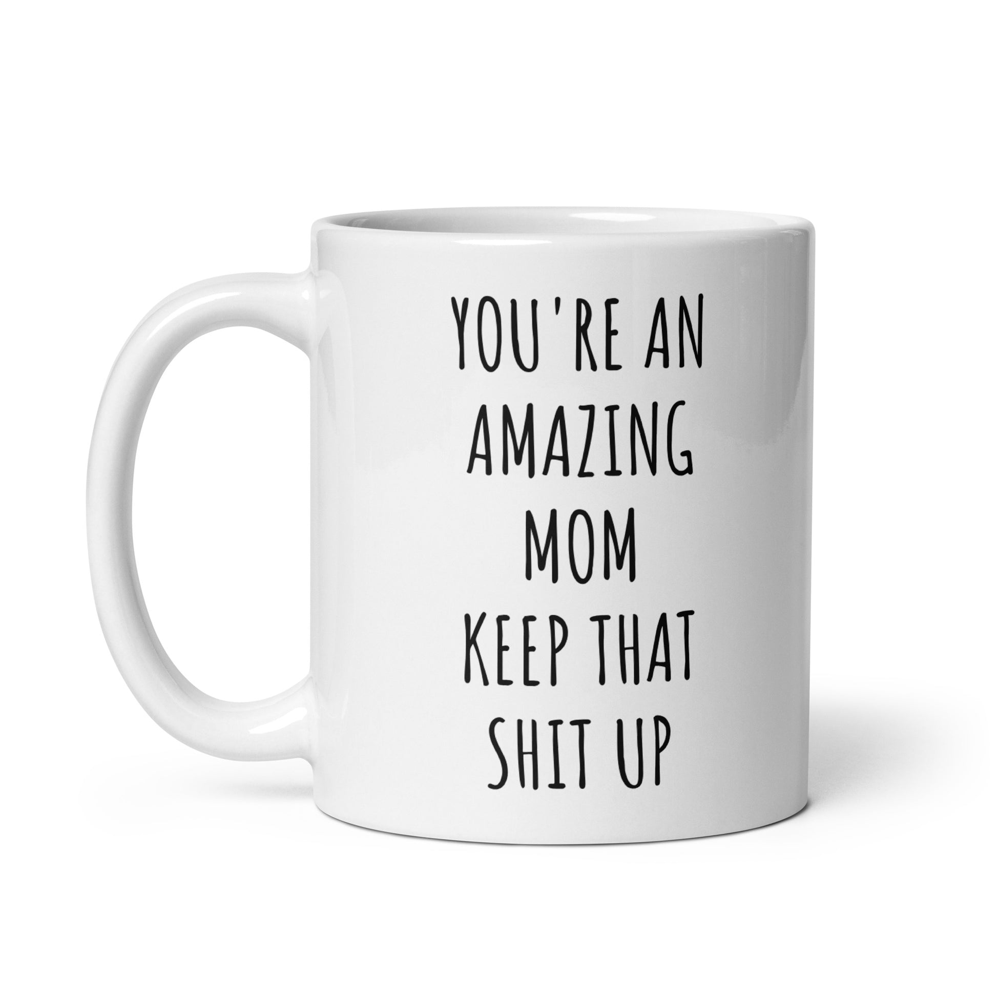 “You're An Amazing Mom Keep That Shit Up" coffee mug in white.