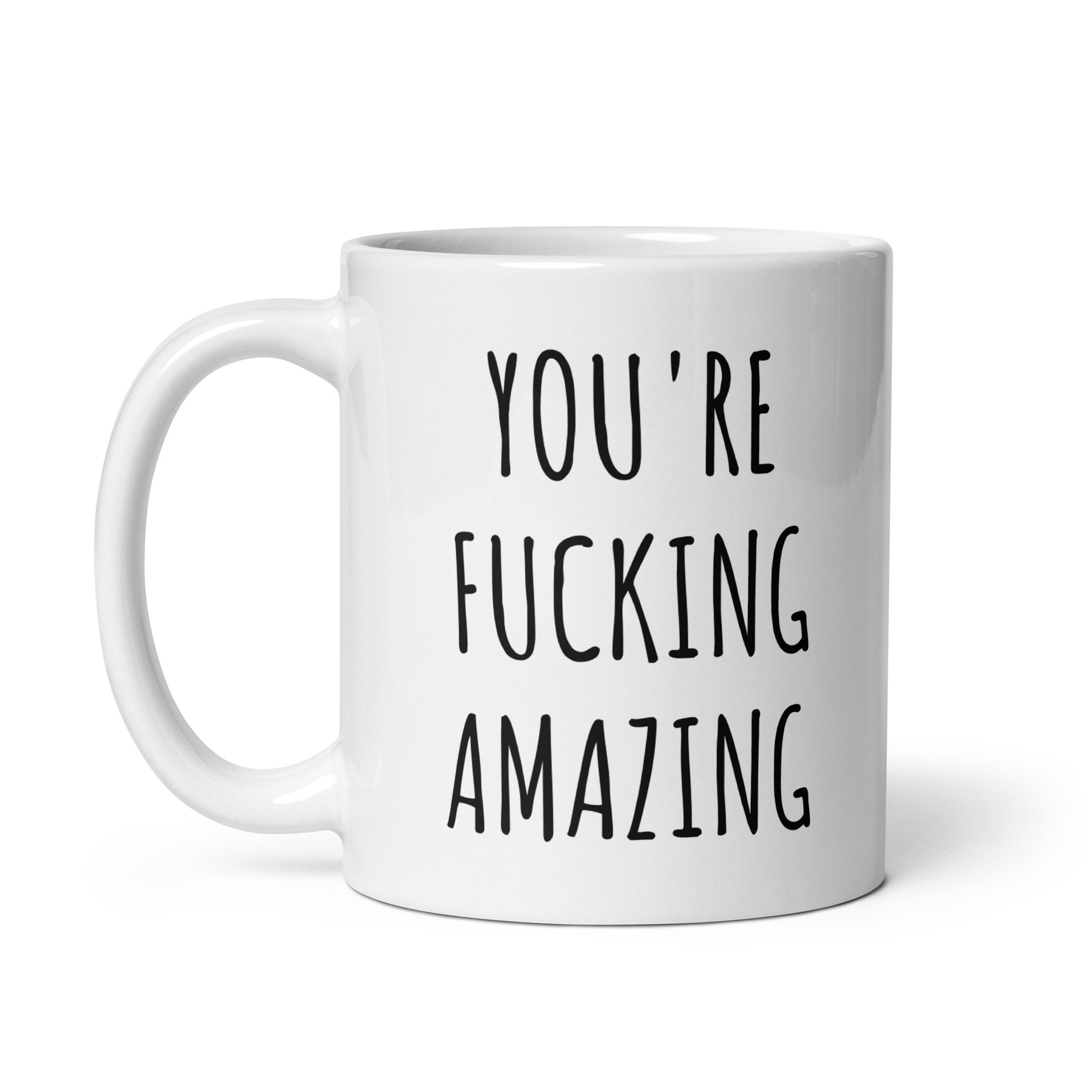 “You're Fucking Amazing" coffee mug in white.